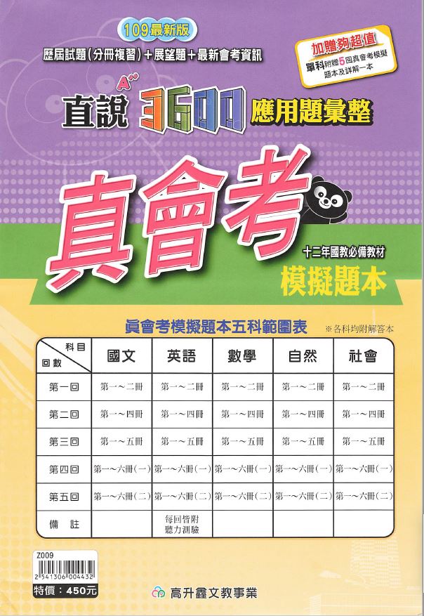 109年 國中會考 真會考 高升鑫 直說3600 A++ 模擬題本 五科合一 應用題彙編 會考