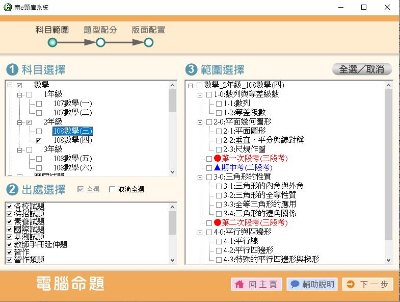 108學年下學期 國中命題光碟 南一版 數學科 1-3年級 題庫光碟(1年級是舊課綱)
