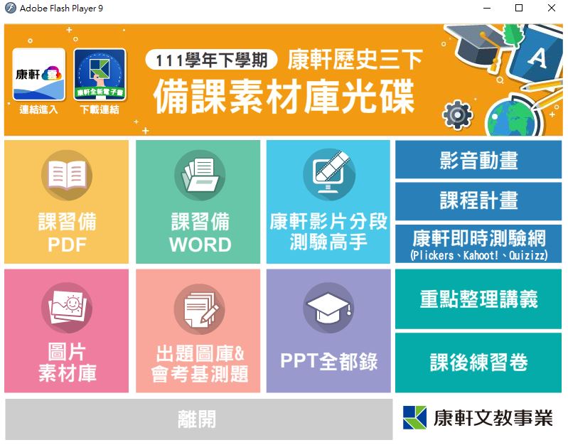 111學年下學期 國中 康軒版 歷史備課資料庫 3年級(含課本、卷類資源、備課用書、習作含解答、教學輔助資源)教學光碟