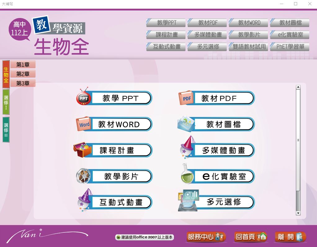 版 生物科(全、選修I、選修III) 教學光碟