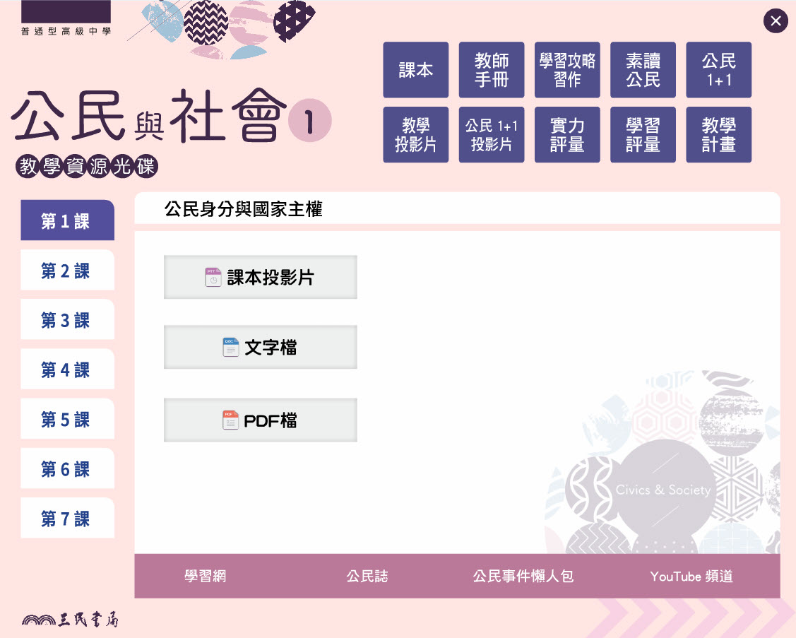 112學年上學期 高中 三民版 公民科 1年級 教學光碟