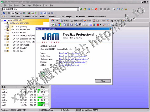 • JAM Software TreeSize Professional v5.4.0.676 英文正式版(硬碟空間回收器軟體)